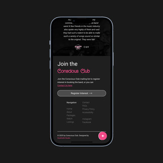 We started with mood boards, colours, typography exploration, and discussions around the band’s identity. Conscious Club has a vibrant, stylish, high-energy personality - and we wanted the website to reflect that without compromising elegance.